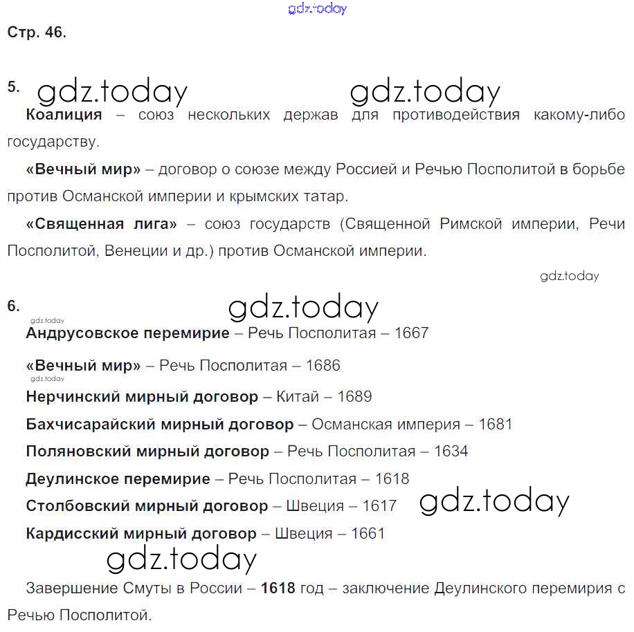 На страницах сайта gdz.today вы найдете учебный и вспомогательный материал, направленный на улучшения знаний школьной программы. ГДЗ - онлайн мир знаний Решение к части 2. Страницы 46 Рабочей тетради по Истории России для 7 класса Чернова Экзамен УМК 2017