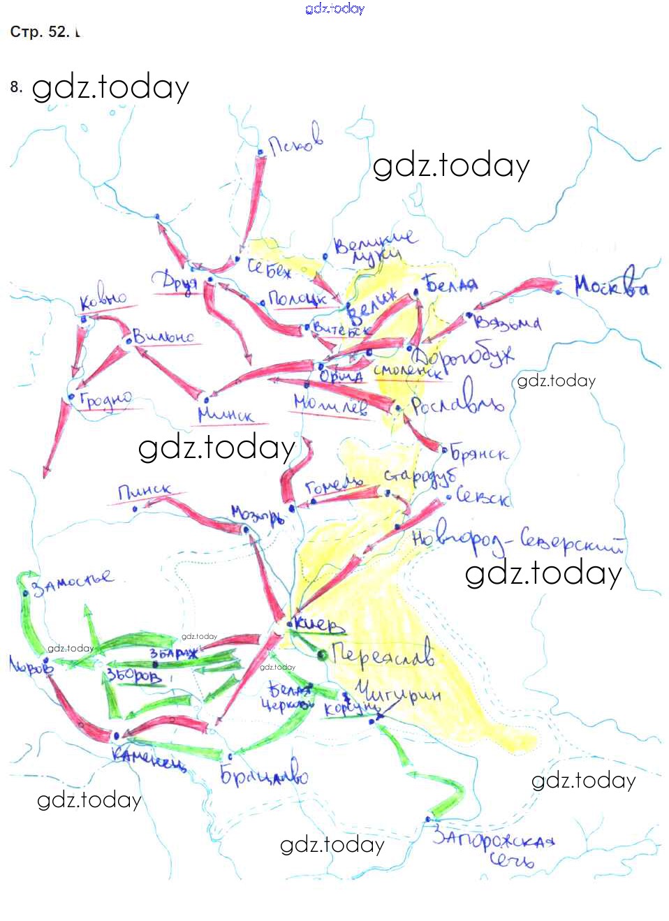 На страницах сайта gdz.today вы найдете учебный и вспомогательный материал, направленный на улучшения знаний школьной программы. ГДЗ - онлайн мир знаний Решение к части 2. Страницы 52 Рабочей тетради по Истории России для 7 класса Чернова Экзамен УМК 2017