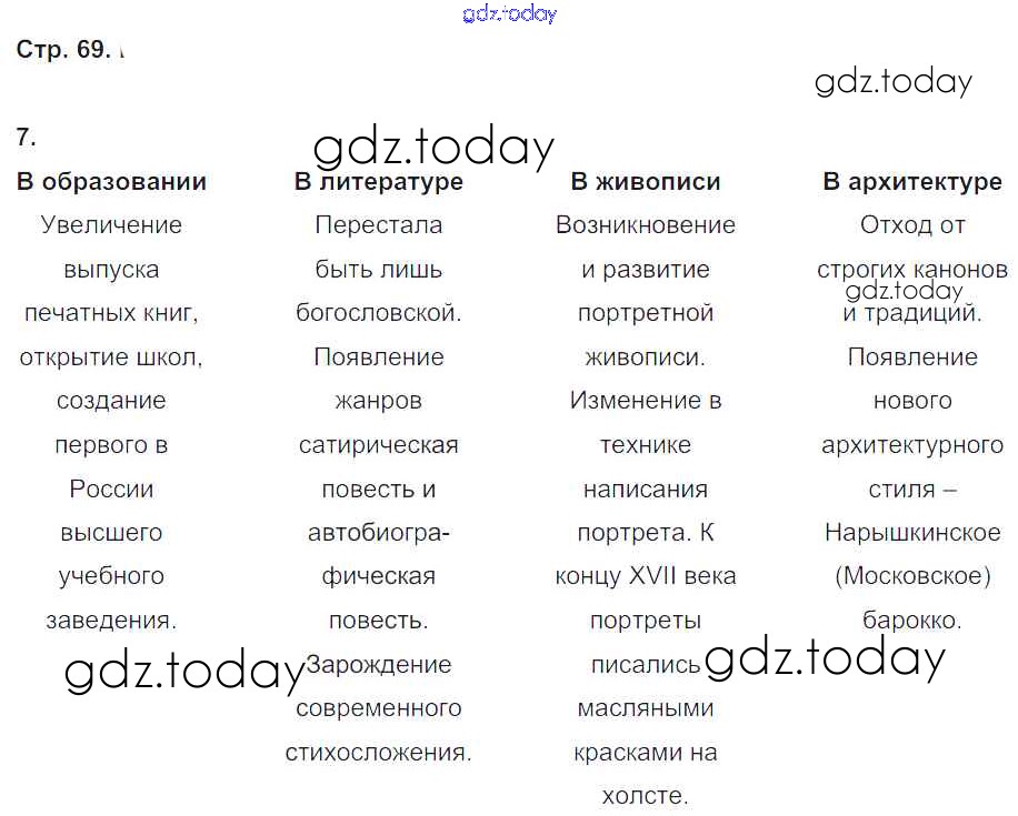 На страницах сайта gdz.today вы найдете учебный и вспомогательный материал, направленный на улучшения знаний школьной программы. ГДЗ - онлайн мир знаний Решение к части 2. Страницы 69 Рабочей тетради по Истории России для 7 класса Чернова Экзамен УМК 2017