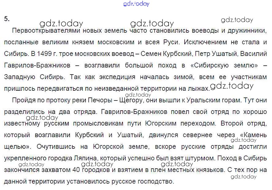 На страницах сайта gdz.today вы найдете учебный и вспомогательный материал, направленный на улучшения знаний школьной программы. ГДЗ - онлайн мир знаний Решение к § 1. Мир и Россия в начале эпохи Великих географических открытий 5 Рабочей тетради по Истории России для 7 класса Данилов, Косулина Просвещение УМК 2016