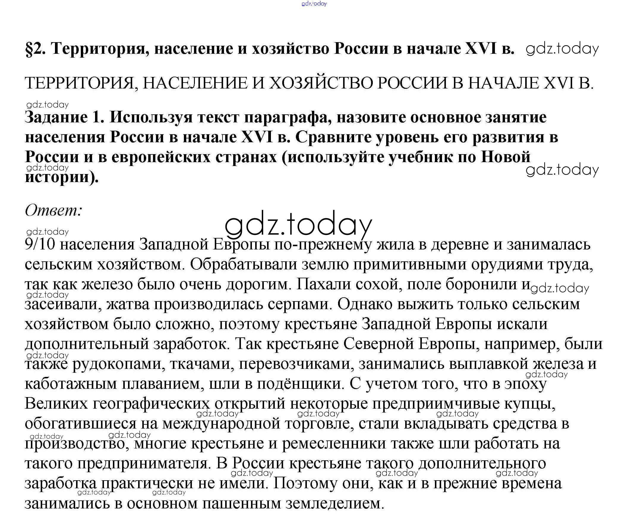 На страницах сайта gdz.today вы найдете учебный и вспомогательный материал, направленный на улучшения знаний школьной программы. ГДЗ - онлайн мир знаний Решение к § 2. Территория, население и хозяйство России в начале XVI в. 1 Рабочей тетради по Истории России для 7 класса Данилов, Косулина Просвещение УМК 2016