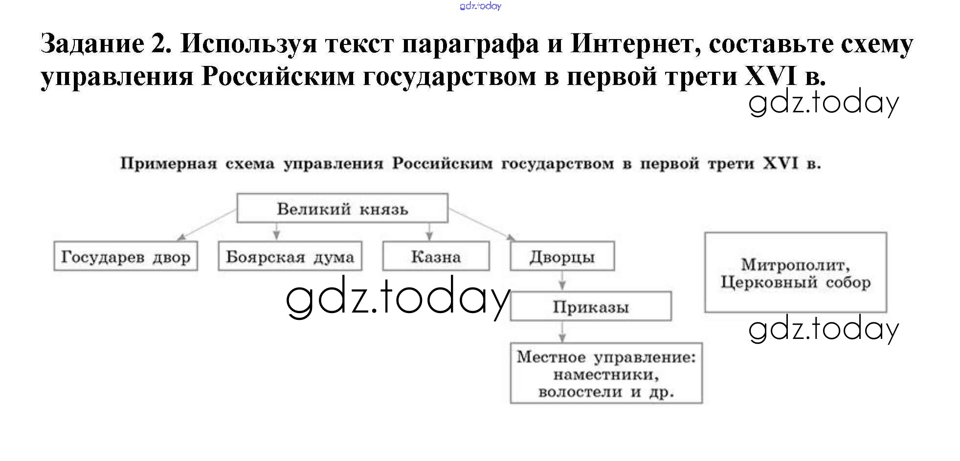 На страницах сайта gdz.today вы найдете учебный и вспомогательный материал, направленный на улучшения знаний школьной программы. ГДЗ - онлайн мир знаний Решение к § 4. Российское государство в первой трети XVI в. 2 Рабочей тетради по Истории России для 7 класса Данилов, Косулина Просвещение УМК 2016