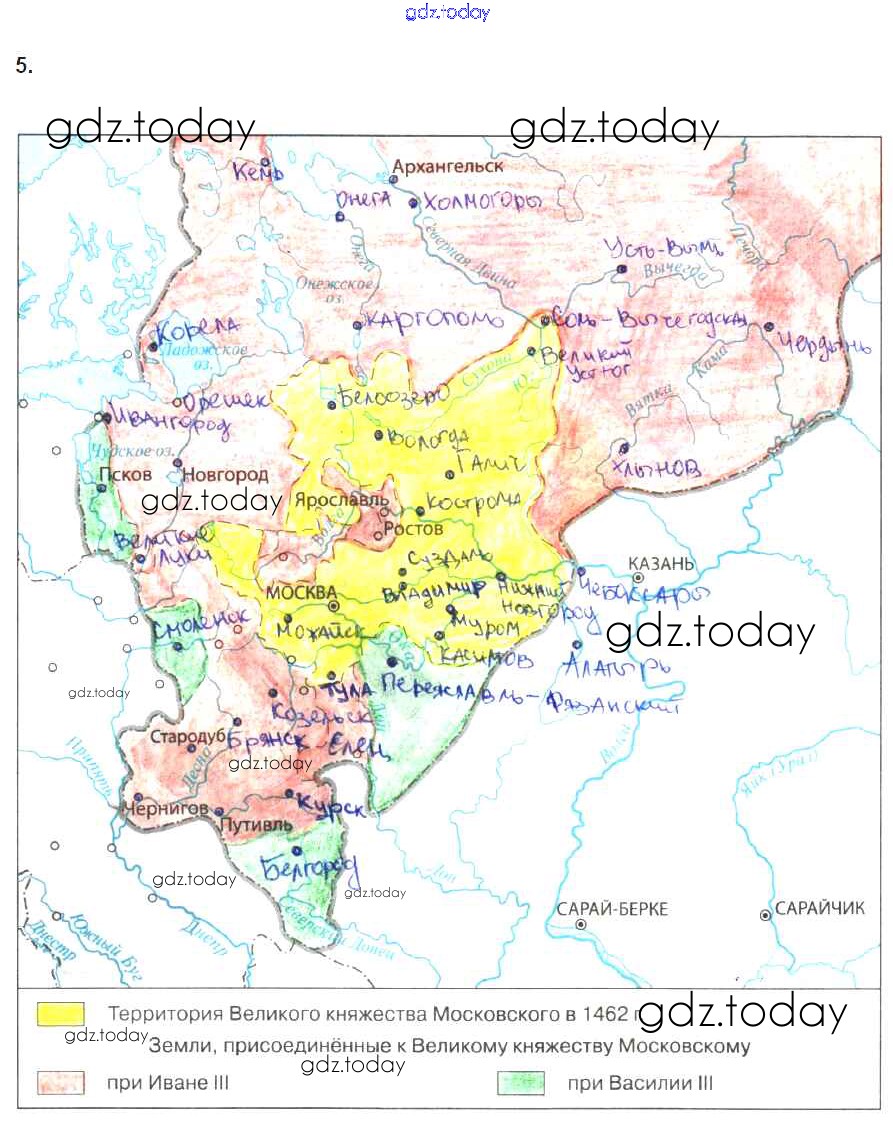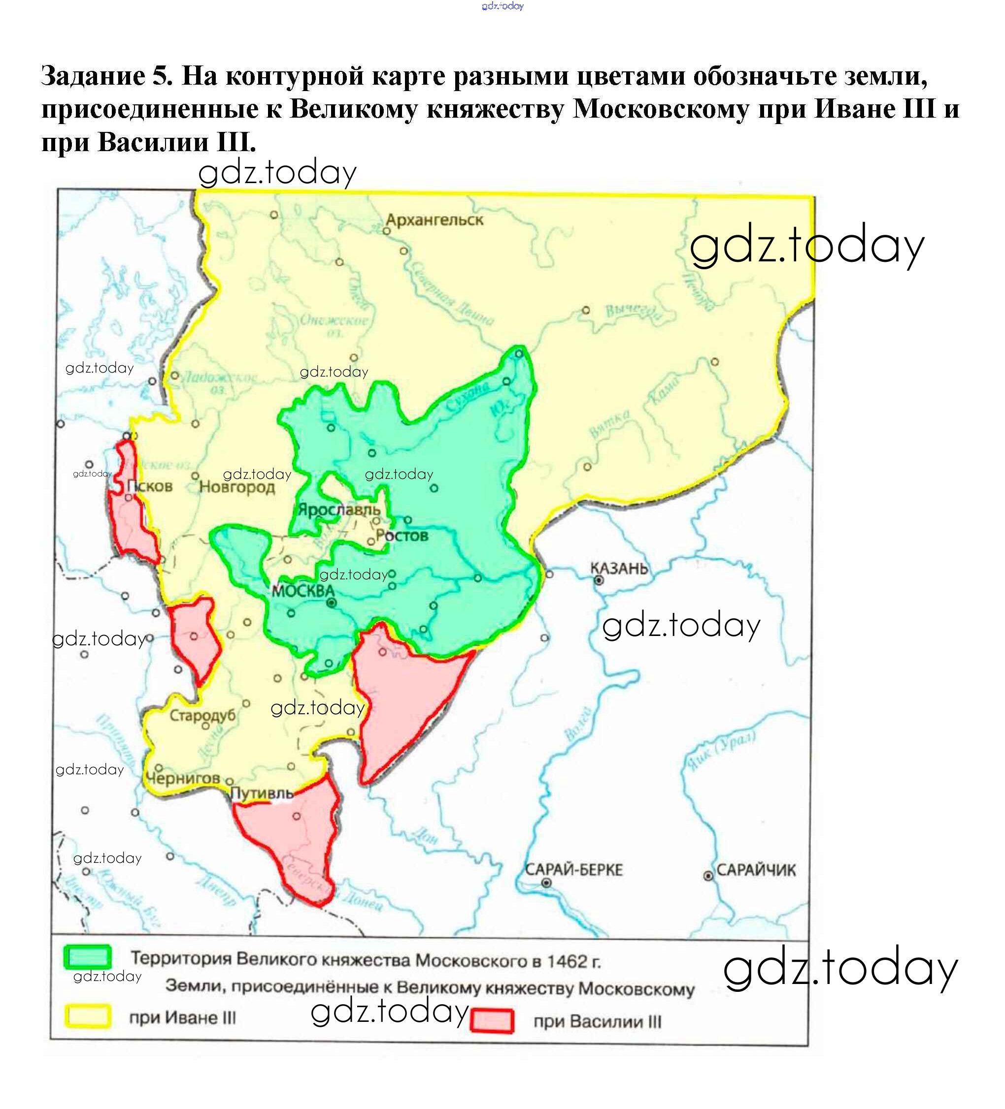 На страницах сайта gdz.today вы найдете учебный и вспомогательный материал, направленный на улучшения знаний школьной программы. ГДЗ - онлайн мир знаний Решение к § 4. Российское государство в первой трети XVI в. 5 Рабочей тетради по Истории России для 7 класса Данилов, Косулина Просвещение УМК 2016