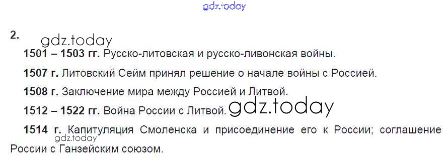 На страницах сайта gdz.today вы найдете учебный и вспомогательный материал, направленный на улучшения знаний школьной программы. ГДЗ - онлайн мир знаний Решение к § 5. Внешняя политика Российского государства в первой трети XVI в. 2 Рабочей тетради по Истории России для 7 класса Данилов, Косулина Просвещение УМК 2016