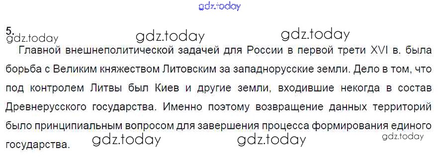 На страницах сайта gdz.today вы найдете учебный и вспомогательный материал, направленный на улучшения знаний школьной программы. ГДЗ - онлайн мир знаний Решение к § 5. Внешняя политика Российского государства в первой трети XVI в. 5 Рабочей тетради по Истории России для 7 класса Данилов, Косулина Просвещение УМК 2016