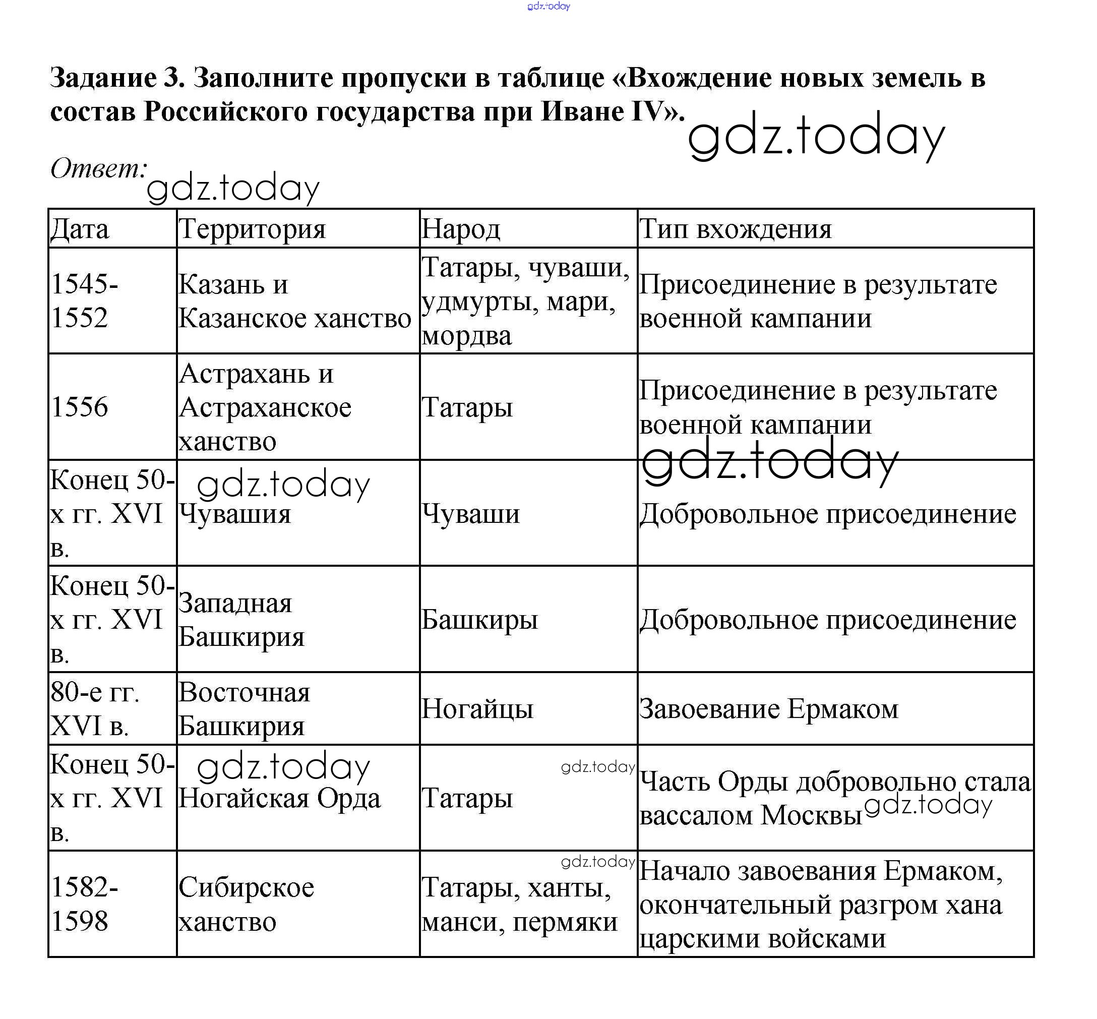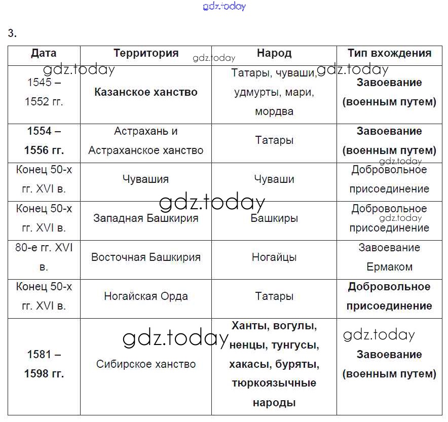 На страницах сайта gdz.today вы найдете учебный и вспомогательный материал, направленный на улучшения знаний школьной программы. ГДЗ - онлайн мир знаний Решение к § 7—8. Внешняя политика России во второй половине XVI в. 3 Рабочей тетради по Истории России для 7 класса Данилов, Косулина Просвещение УМК 2016