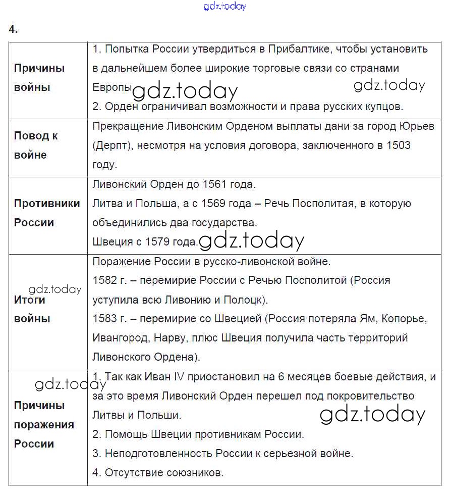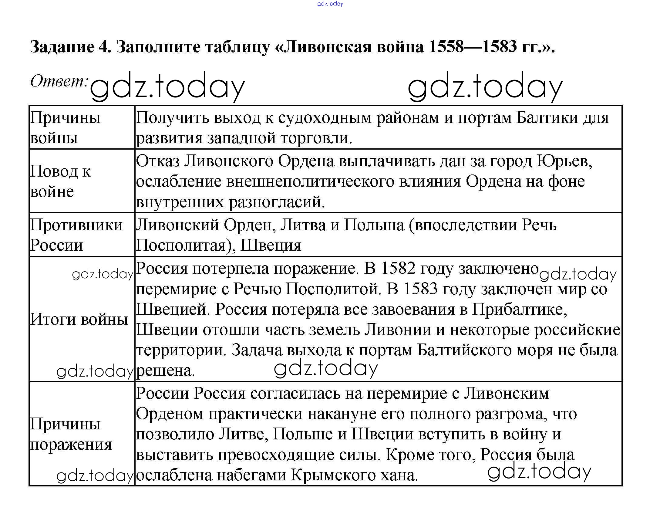 На страницах сайта gdz.today вы найдете учебный и вспомогательный материал, направленный на улучшения знаний школьной программы. ГДЗ - онлайн мир знаний Решение к § 7—8. Внешняя политика России во второй половине XVI в. 4 Рабочей тетради по Истории России для 7 класса Данилов, Косулина Просвещение УМК 2016