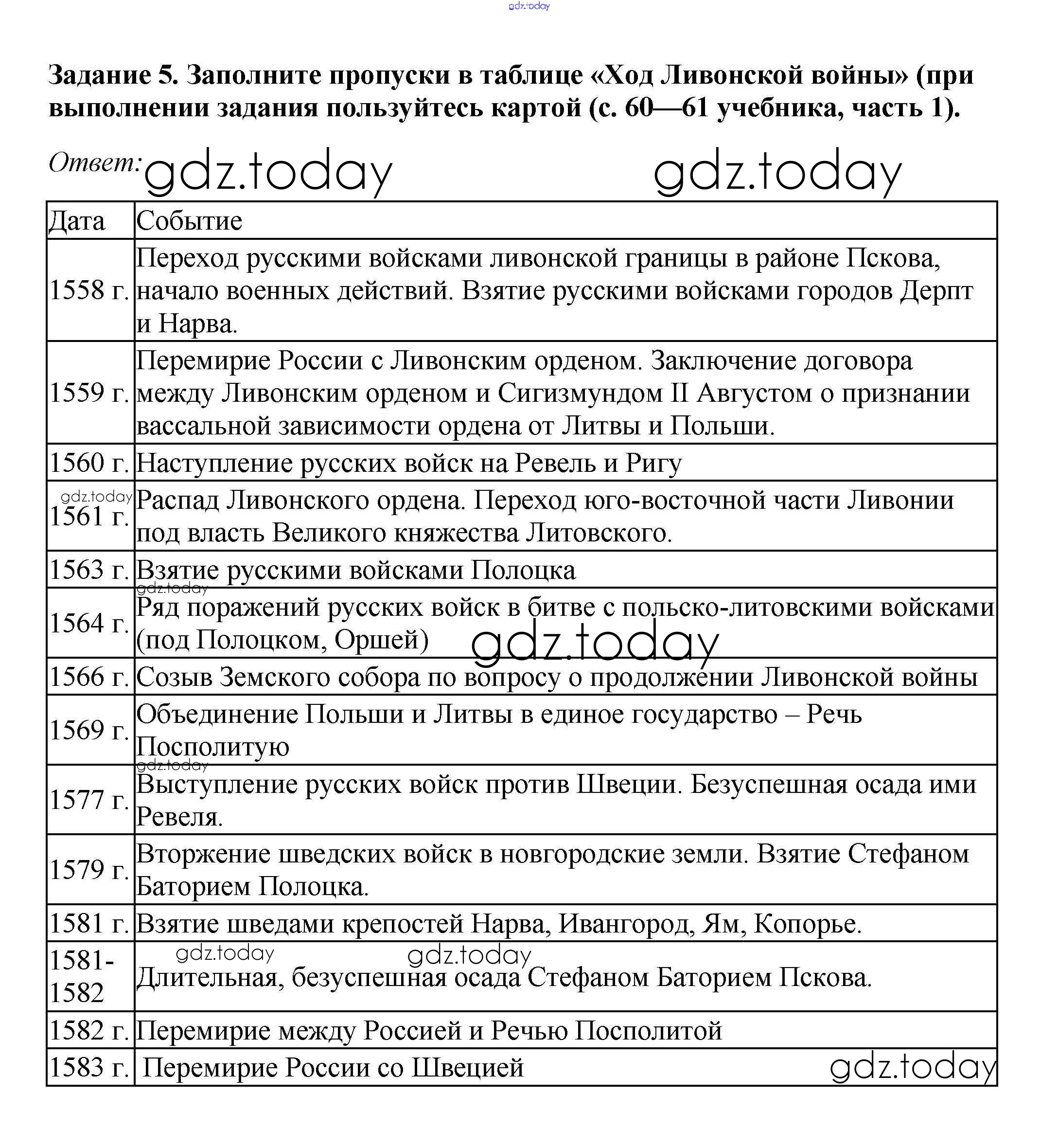 На страницах сайта gdz.today вы найдете учебный и вспомогательный материал, направленный на улучшения знаний школьной программы. ГДЗ - онлайн мир знаний Решение к § 7—8. Внешняя политика России во второй половине XVI в. 5 Рабочей тетради по Истории России для 7 класса Данилов, Косулина Просвещение УМК 2016