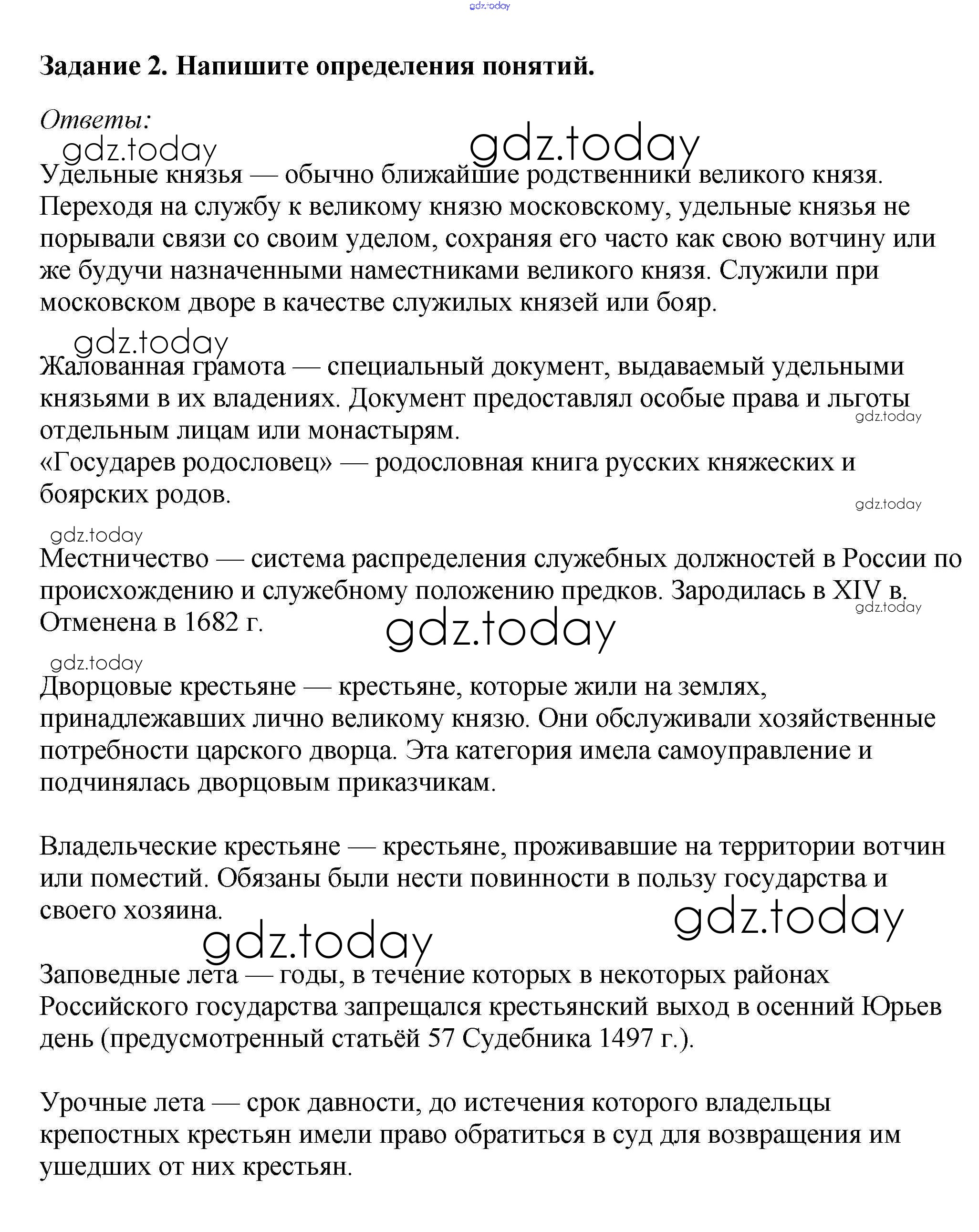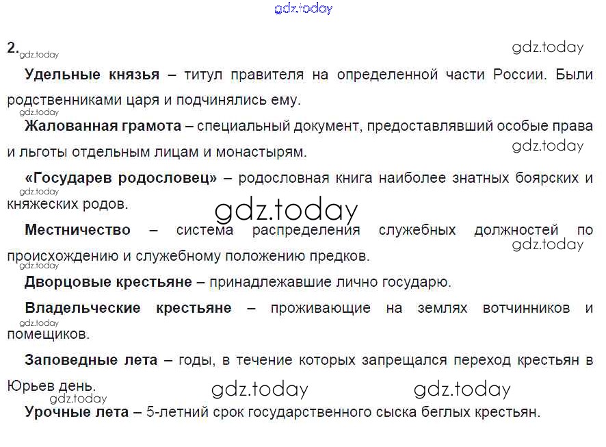 На страницах сайта gdz.today вы найдете учебный и вспомогательный материал, направленный на улучшения знаний школьной программы. ГДЗ - онлайн мир знаний Решение к § 9. Российское общество XVI в.: СЛУЖИЛЫЕ И ТЯГЛЫЕ 2 Рабочей тетради по Истории России для 7 класса Данилов, Косулина Просвещение УМК 2016
