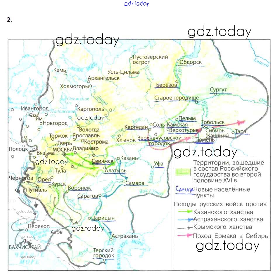 На страницах сайта gdz.today вы найдете учебный и вспомогательный материал, направленный на улучшения знаний школьной программы. ГДЗ - онлайн мир знаний Народы России во второй половине XVI в. 2 Рабочей тетради по Истории России для 7 класса Данилов, Косулина Просвещение УМК 2016