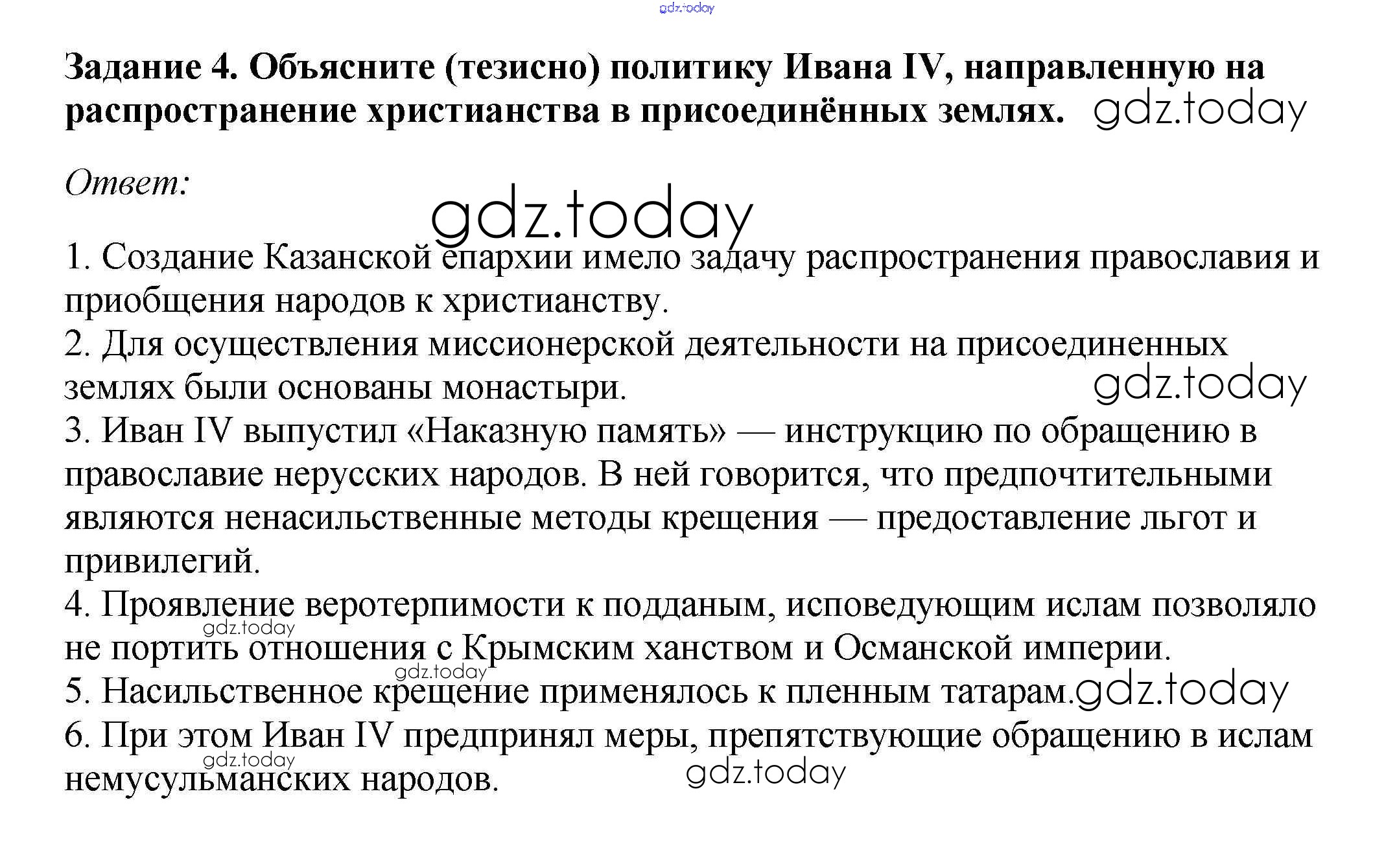 Ответы к Народы России во второй половине XVI в. 4 Рабочей тетради по Истории России для 7 класса Данилов, Косулина Просвещение УМК 2016