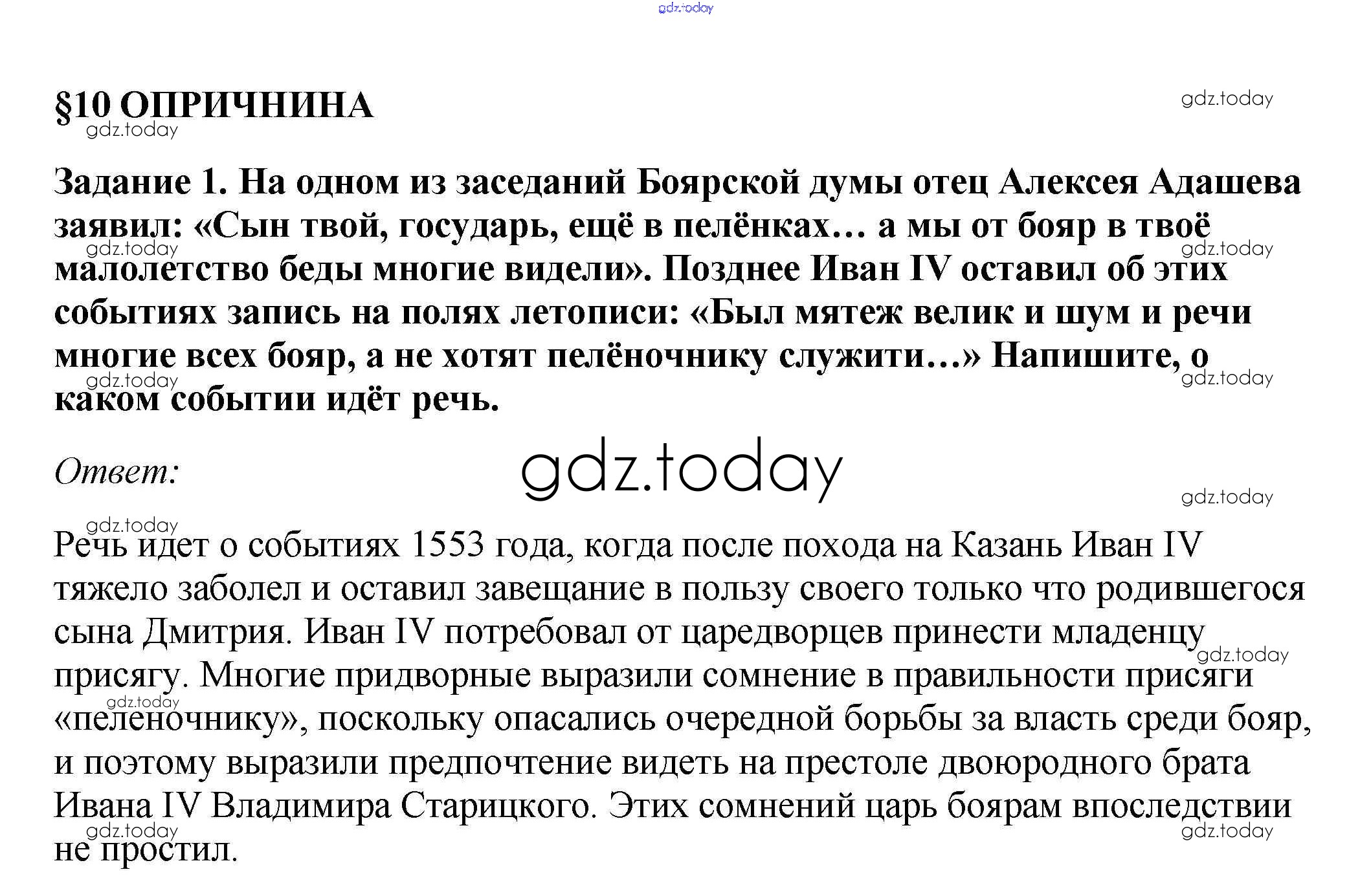 На страницах сайта gdz.today вы найдете учебный и вспомогательный материал, направленный на улучшения знаний школьной программы. ГДЗ - онлайн мир знаний Решение к § 10. Опричнина 1 Рабочей тетради по Истории России для 7 класса Данилов, Косулина Просвещение УМК 2016