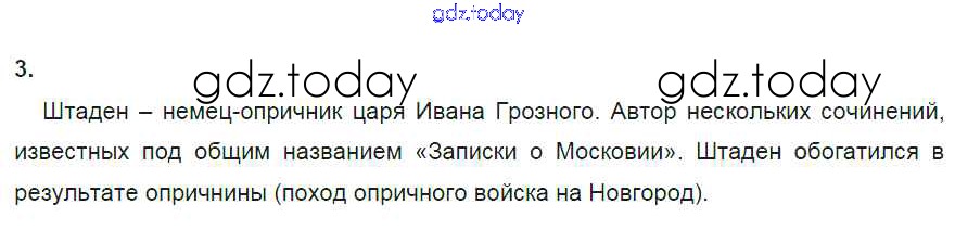 На страницах сайта gdz.today вы найдете учебный и вспомогательный материал, направленный на улучшения знаний школьной программы. ГДЗ - онлайн мир знаний Решение к § 10. Опричнина 3 Рабочей тетради по Истории России для 7 класса Данилов, Косулина Просвещение УМК 2016