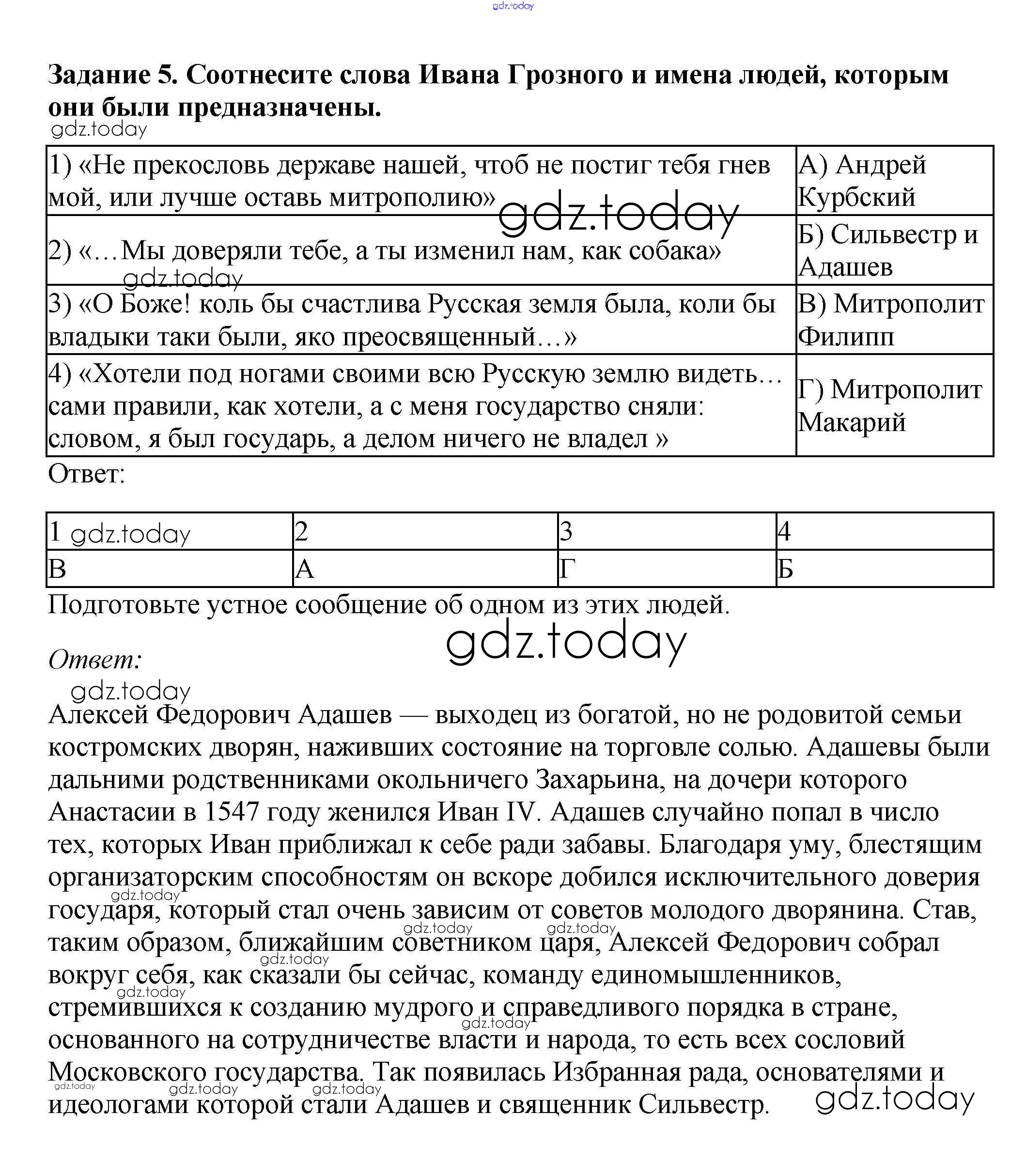 На страницах сайта gdz.today вы найдете учебный и вспомогательный материал, направленный на улучшения знаний школьной программы. ГДЗ - онлайн мир знаний Решение к § 10. Опричнина 5 Рабочей тетради по Истории России для 7 класса Данилов, Косулина Просвещение УМК 2016