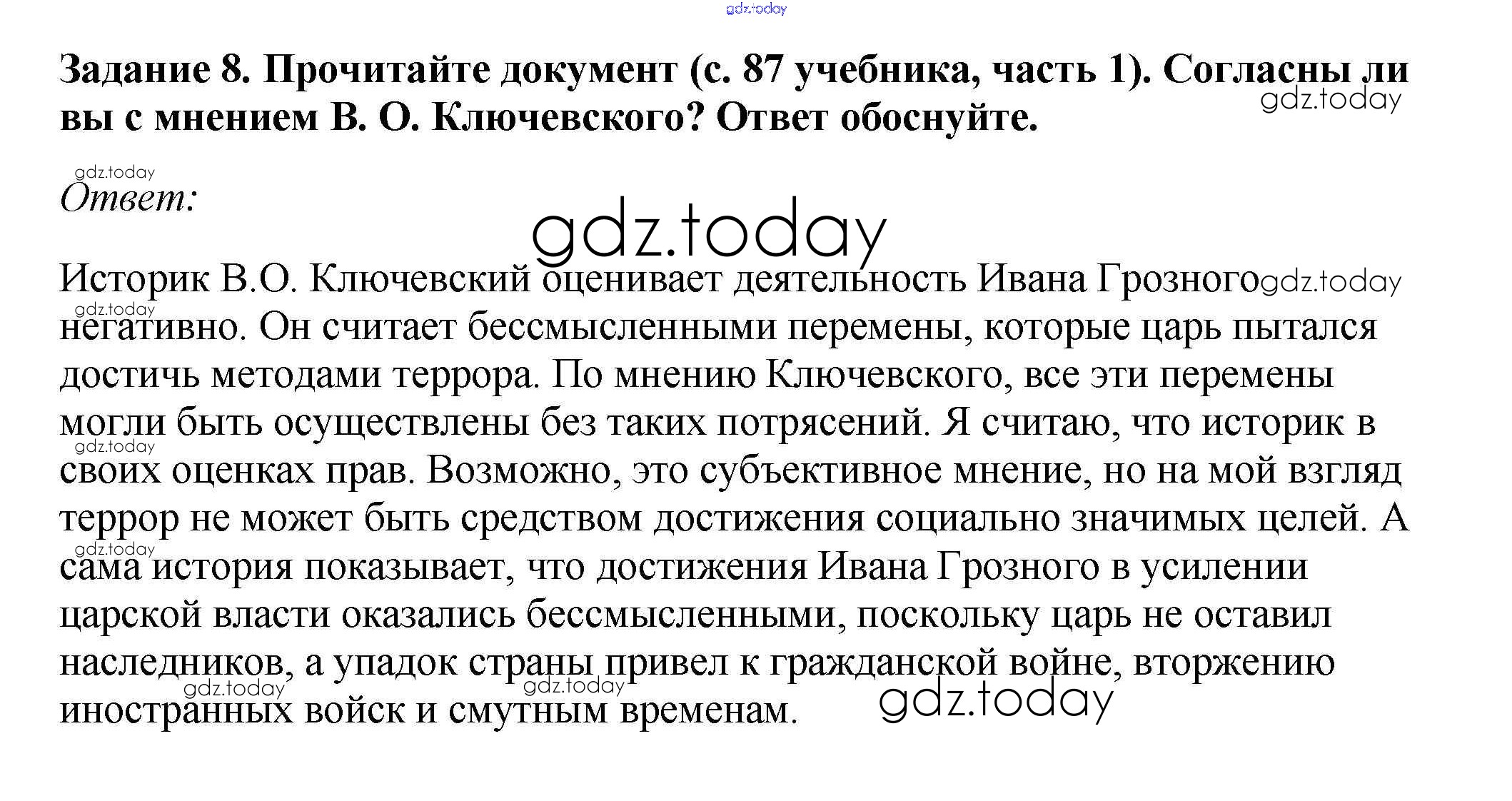 На страницах сайта gdz.today вы найдете учебный и вспомогательный материал, направленный на улучшения знаний школьной программы. ГДЗ - онлайн мир знаний Решение к § 10. Опричнина 8 Рабочей тетради по Истории России для 7 класса Данилов, Косулина Просвещение УМК 2016