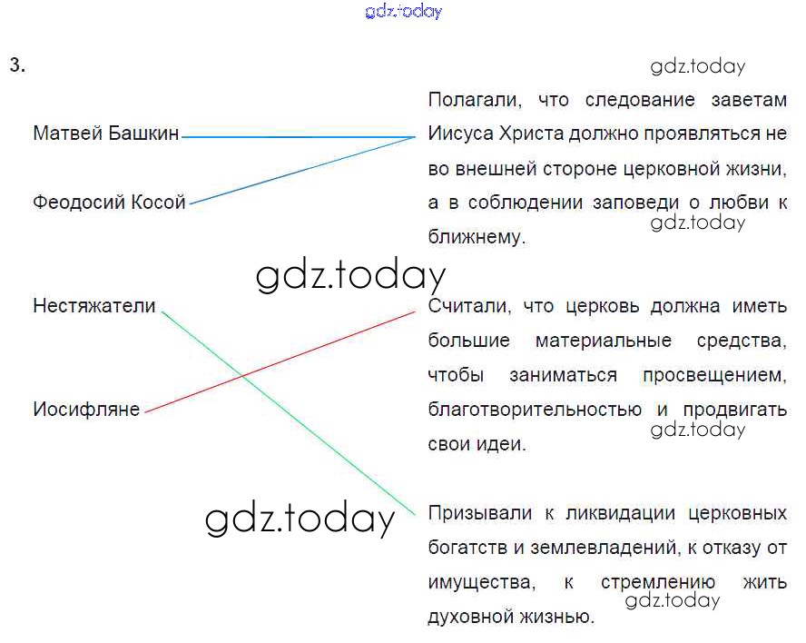 На страницах сайта gdz.today вы найдете учебный и вспомогательный материал, направленный на улучшения знаний школьной программы. ГДЗ - онлайн мир знаний Решение к § 12. Церковь и государство в XVI в. 3 Рабочей тетради по Истории России для 7 класса Данилов, Косулина Просвещение УМК 2016