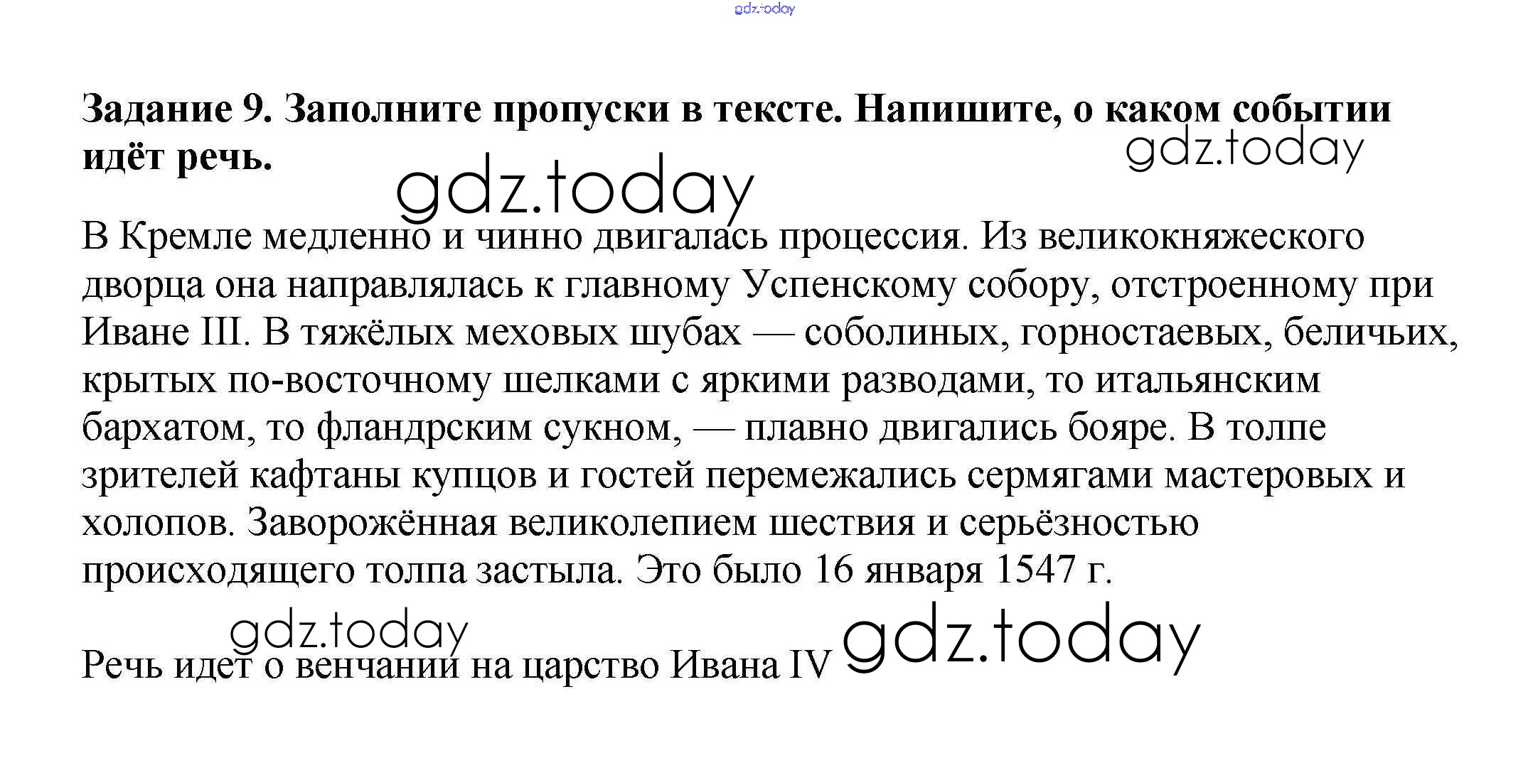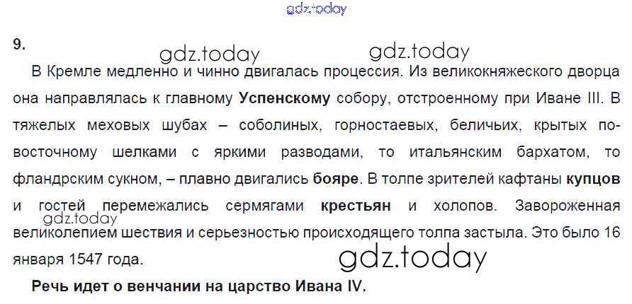 На страницах сайта gdz.today вы найдете учебный и вспомогательный материал, направленный на улучшения знаний школьной программы. ГДЗ - онлайн мир знаний Культура и повседневная жизнь народов России в XVI в. 9 Рабочей тетради по Истории России для 7 класса Данилов, Косулина Просвещение УМК 2016