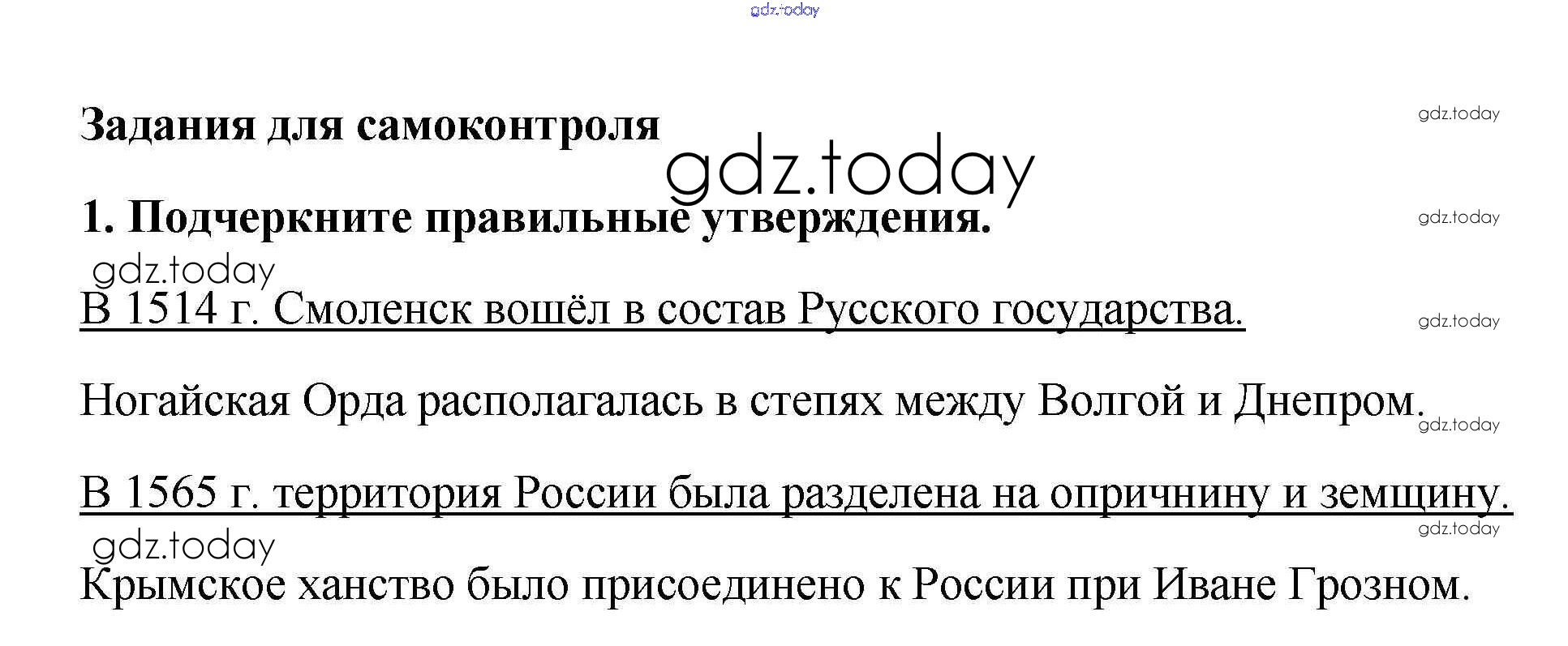 На страницах сайта gdz.today вы найдете учебный и вспомогательный материал, направленный на улучшения знаний школьной программы. ГДЗ - онлайн мир знаний Задания для самоконтроля 1 Рабочей тетради по Истории России для 7 класса Данилов, Косулина Просвещение УМК 2016