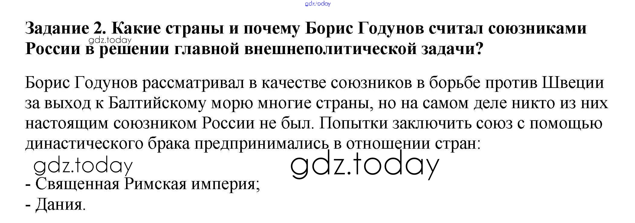 На страницах сайта gdz.today вы найдете учебный и вспомогательный материал, направленный на улучшения знаний школьной программы. ГДЗ - онлайн мир знаний Решение к § 13. Внешнеполитические связи России с Европой и Азией в конце XVI — начале XVII в. 2 Рабочей тетради по Истории России для 7 класса Данилов, Косулина Просвещение УМК 2016