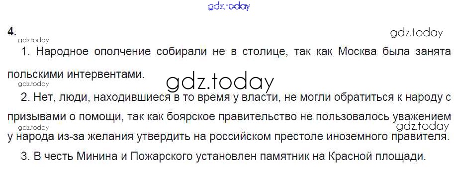 На страницах сайта gdz.today вы найдете учебный и вспомогательный материал, направленный на улучшения знаний школьной программы. ГДЗ - онлайн мир знаний Решение к § 16. Окончание Смутного времени 4 Рабочей тетради по Истории России для 7 класса Данилов, Косулина Просвещение УМК 2016