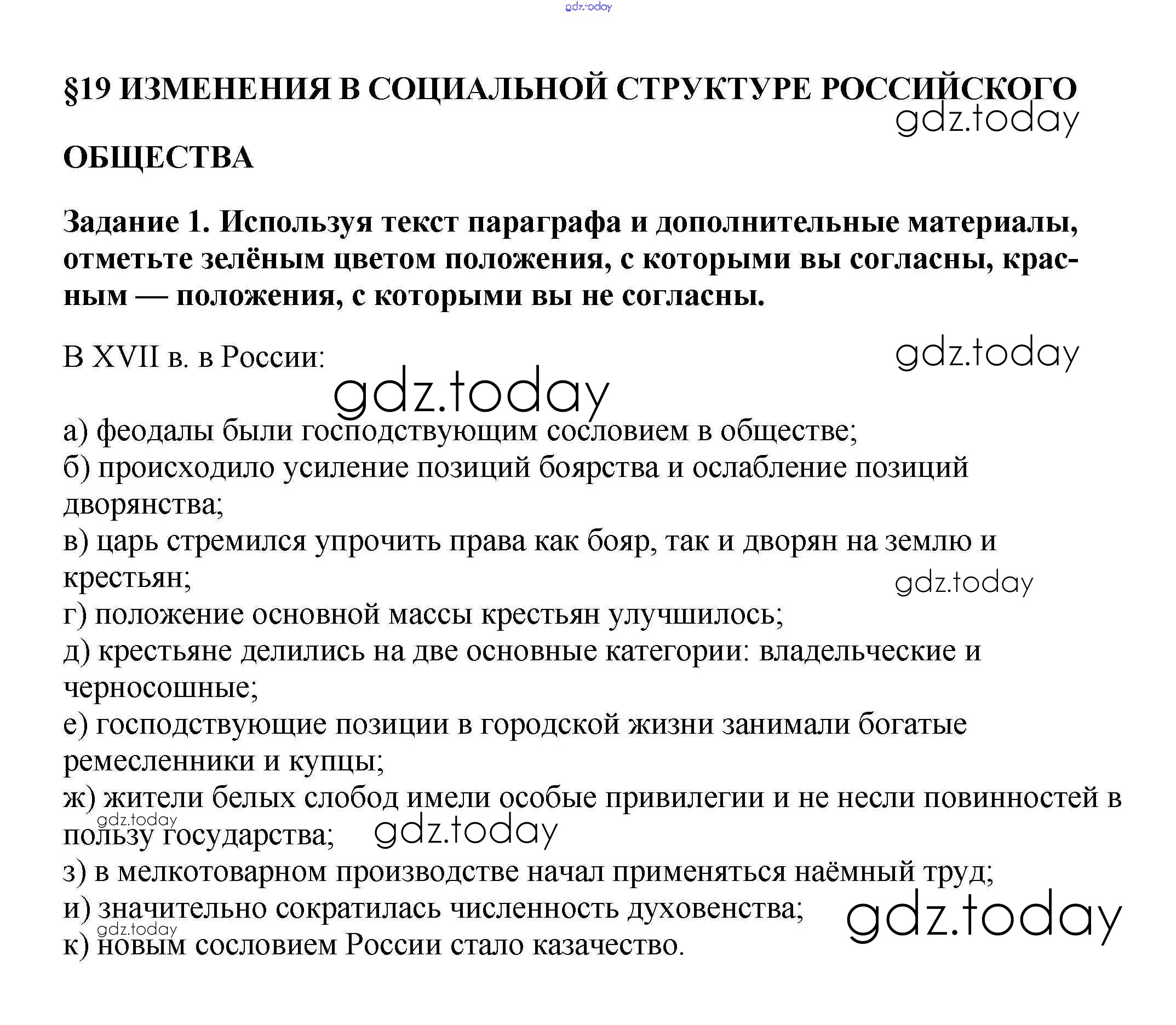 На страницах сайта gdz.today вы найдете учебный и вспомогательный материал, направленный на улучшения знаний школьной программы. ГДЗ - онлайн мир знаний Решение к § 19. Изменения в социальной структуре российского общества 1 Рабочей тетради по Истории России для 7 класса Данилов, Косулина Просвещение УМК 2016