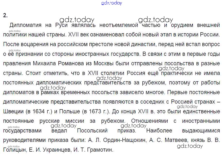 На страницах сайта gdz.today вы найдете учебный и вспомогательный материал, направленный на улучшения знаний школьной программы. ГДЗ - онлайн мир знаний Решение к § 21—22. Россия в системе международных отношений 2 Рабочей тетради по Истории России для 7 класса Данилов, Косулина Просвещение УМК 2016