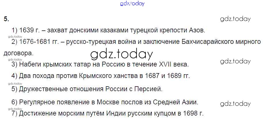 На страницах сайта gdz.today вы найдете учебный и вспомогательный материал, направленный на улучшения знаний школьной программы. ГДЗ - онлайн мир знаний Решение к § 21—22. Россия в системе международных отношений 5 Рабочей тетради по Истории России для 7 класса Данилов, Косулина Просвещение УМК 2016