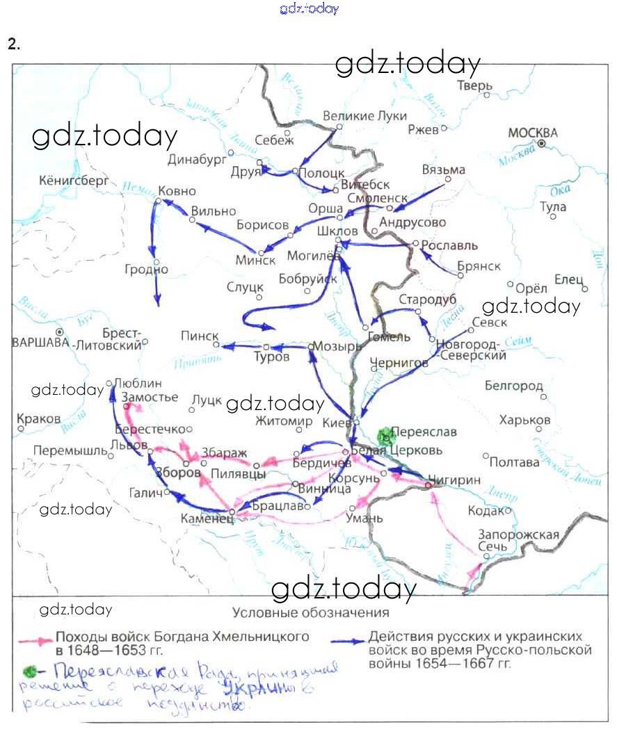 На страницах сайта gdz.today вы найдете учебный и вспомогательный материал, направленный на улучшения знаний школьной программы. ГДЗ - онлайн мир знаний Решение к § 23. «Под рукой российского государства»: Вхождение Украины в состав России 2 Рабочей тетради по Истории России для 7 класса Данилов, Косулина Просвещение УМК 2016
