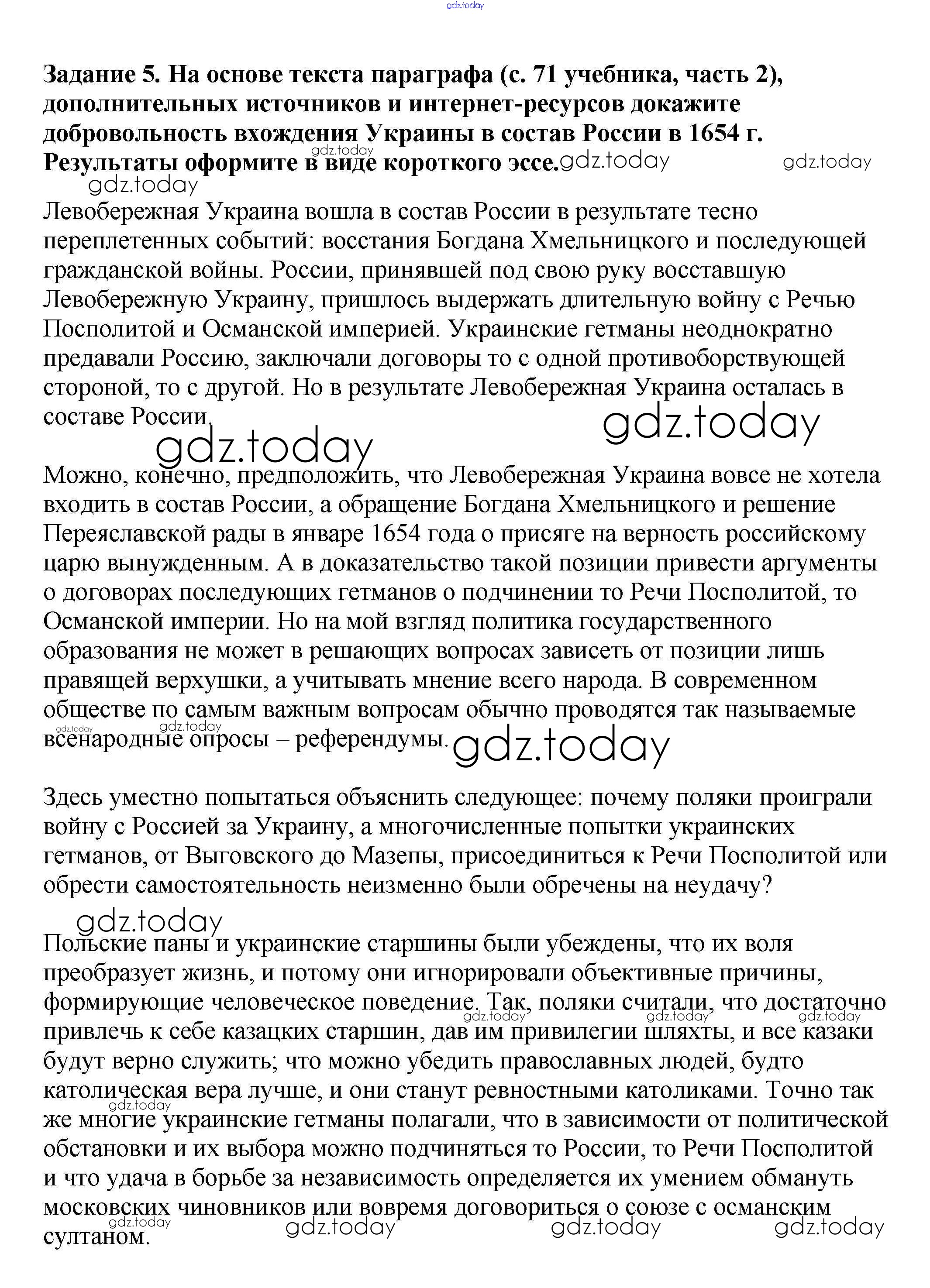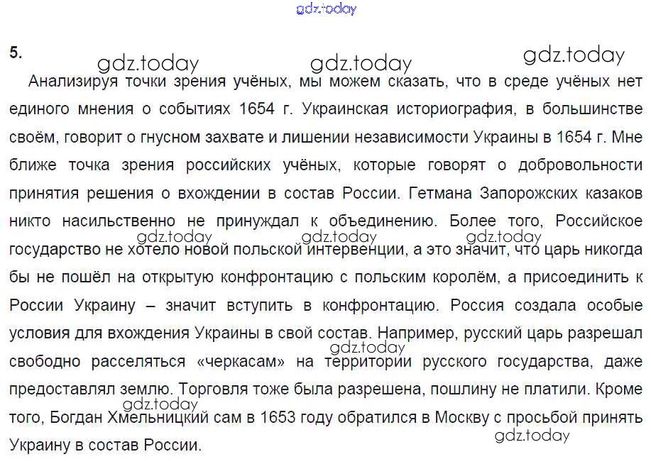 На страницах сайта gdz.today вы найдете учебный и вспомогательный материал, направленный на улучшения знаний школьной программы. ГДЗ - онлайн мир знаний Решение к § 23. «Под рукой российского государства»: Вхождение Украины в состав России 5 Рабочей тетради по Истории России для 7 класса Данилов, Косулина Просвещение УМК 2016