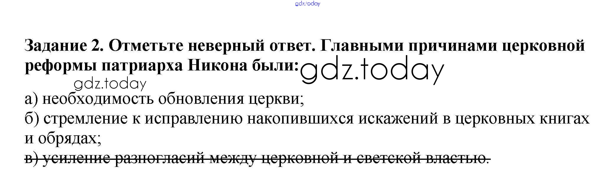 На страницах сайта gdz.today вы найдете учебный и вспомогательный материал, направленный на улучшения знаний школьной программы. ГДЗ - онлайн мир знаний Решение к § 24. Русская православная церковь в XVII в. Реформа патриарха Никона и раскол 2 Рабочей тетради по Истории России для 7 класса Данилов, Косулина Просвещение УМК 2016