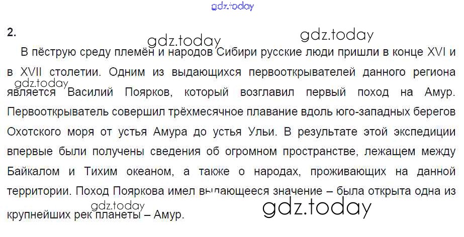 На страницах сайта gdz.today вы найдете учебный и вспомогательный материал, направленный на улучшения знаний школьной программы. ГДЗ - онлайн мир знаний Решение к § 25. Русские путешественники и первопроходцы XVII в. 2 Рабочей тетради по Истории России для 7 класса Данилов, Косулина Просвещение УМК 2016