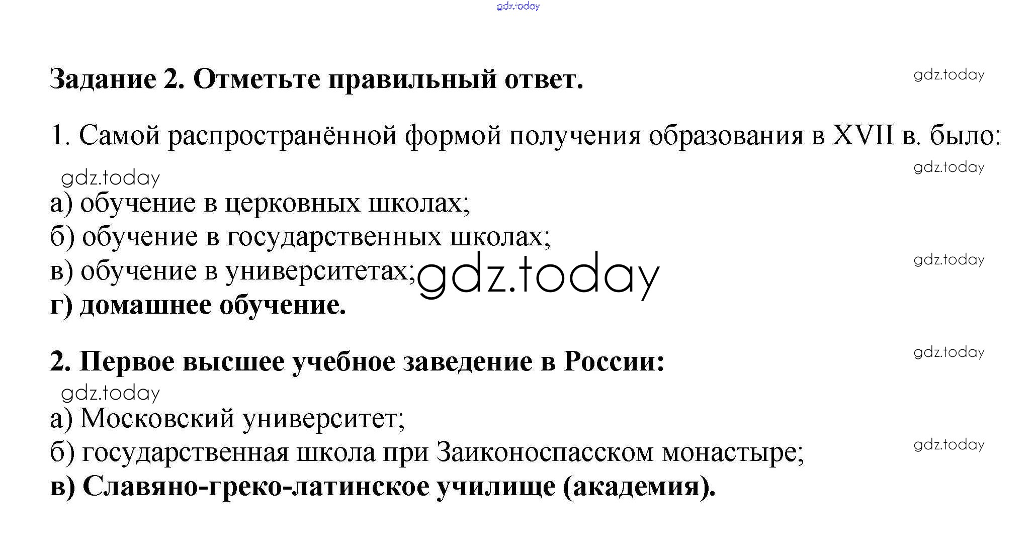 На страницах сайта gdz.today вы найдете учебный и вспомогательный материал, направленный на улучшения знаний школьной программы. ГДЗ - онлайн мир знаний Решение к § 26. Культура народов России в XVII в. 2 Рабочей тетради по Истории России для 7 класса Данилов, Косулина Просвещение УМК 2016