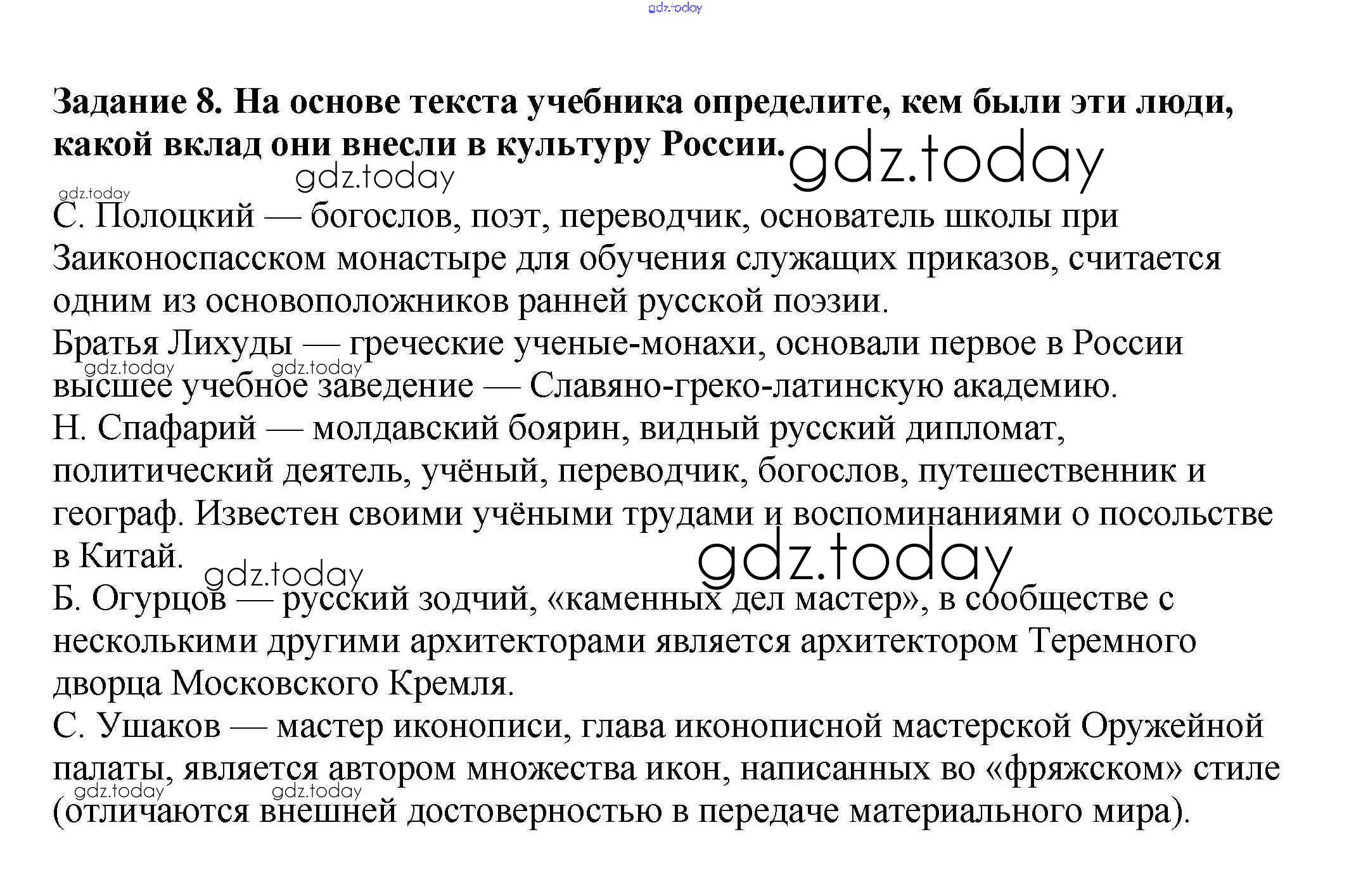 Ответы к Решение к § 26. Культура народов России в XVII в. 8 Рабочей тетради по Истории России для 7 класса Данилов, Косулина Просвещение УМК 2016