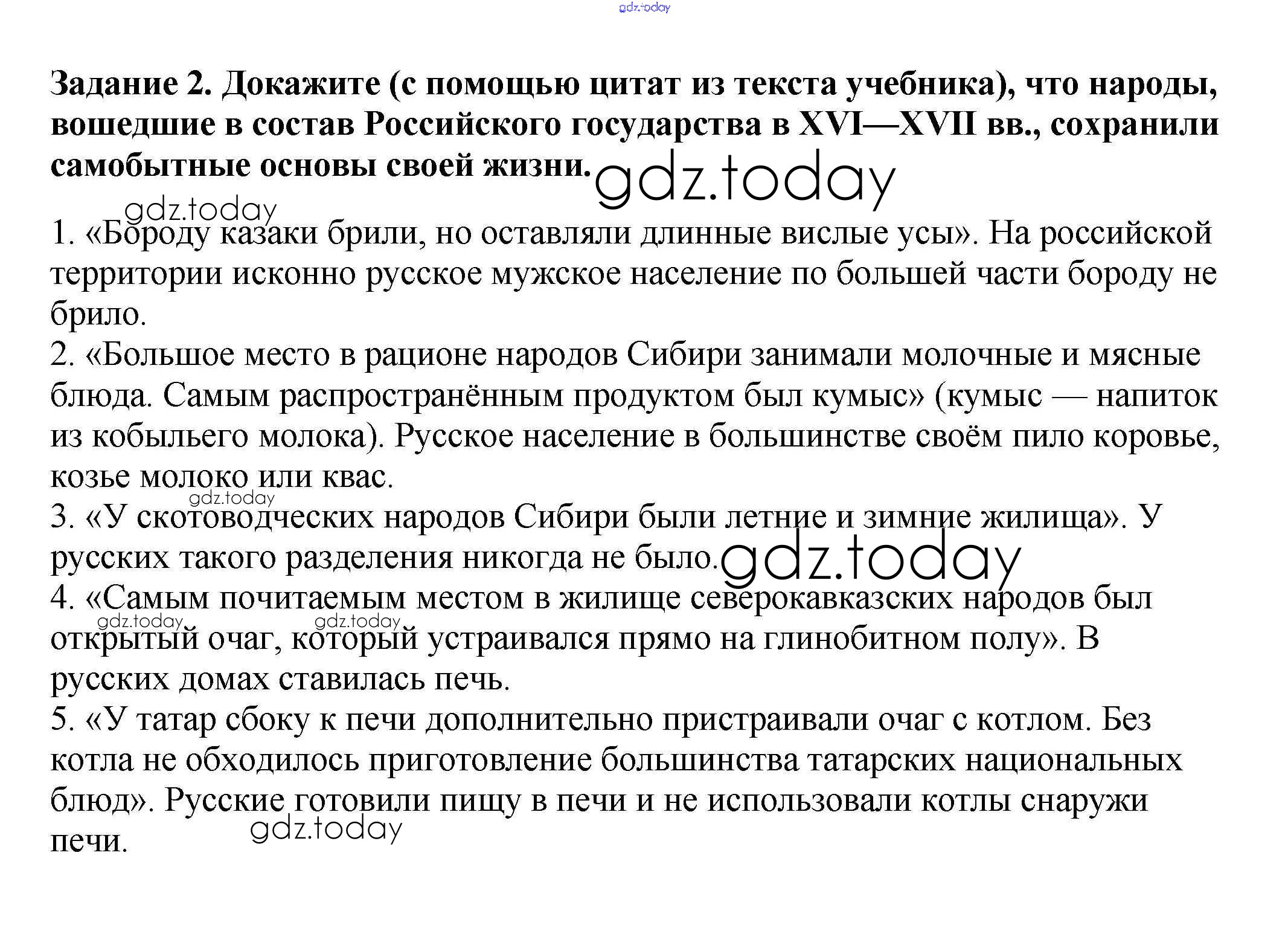 На страницах сайта gdz.today вы найдете учебный и вспомогательный материал, направленный на улучшения знаний школьной программы. ГДЗ - онлайн мир знаний Повседневная жизнь народов Украины, Поволжья, Сибири и Северного Кавказа в XVII в. 2 Рабочей тетради по Истории России для 7 класса Данилов, Косулина Просвещение УМК 2016