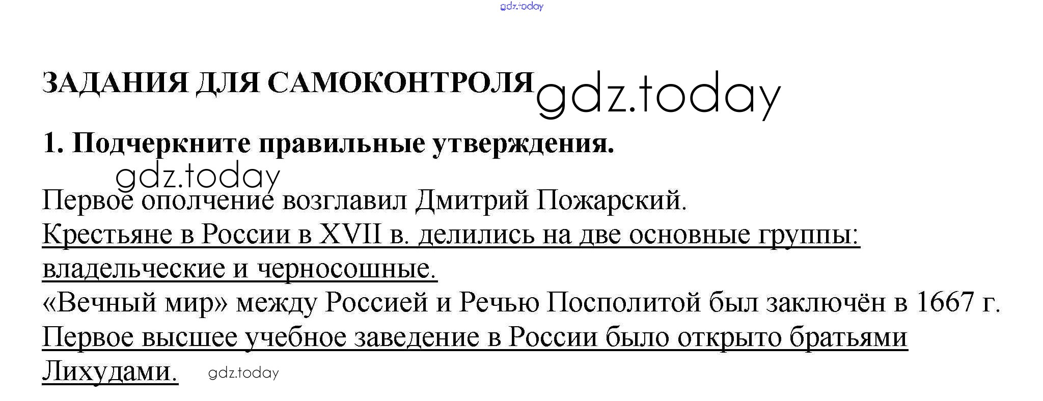 На страницах сайта gdz.today вы найдете учебный и вспомогательный материал, направленный на улучшения знаний школьной программы. ГДЗ - онлайн мир знаний Задания для самоконтроля 1 Рабочей тетради по Истории России для 7 класса Данилов, Косулина Просвещение УМК 2016