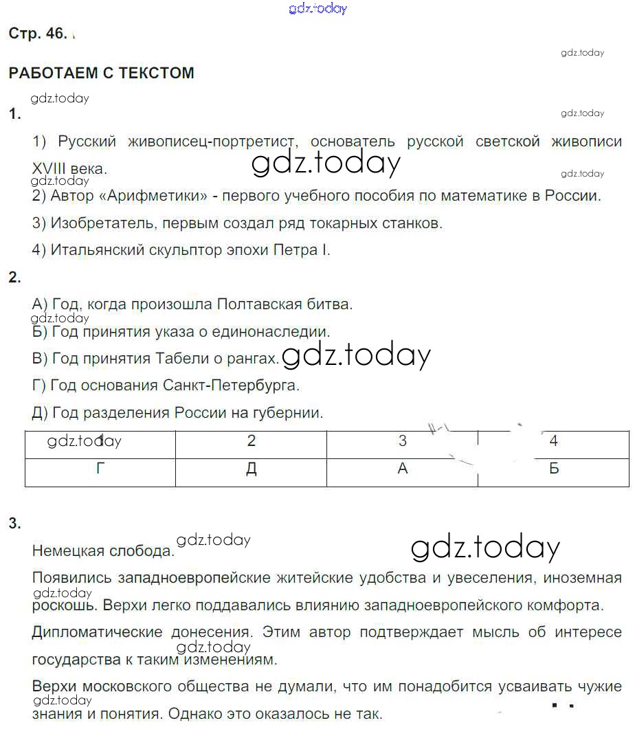 На страницах сайта gdz.today вы найдете учебный и вспомогательный материал, направленный на улучшения знаний школьной программы. ГДЗ - онлайн мир знаний Страницы (решение) 46 Тетради-тренажёру по Истории России для 7 класса Данилов, Лукутин Просвещение Сферы 2016