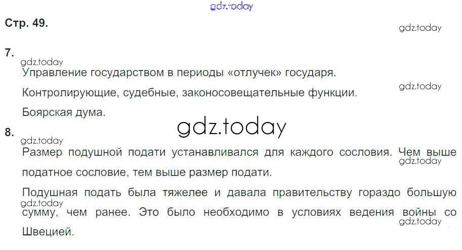 На страницах сайта gdz.today вы найдете учебный и вспомогательный материал, направленный на улучшения знаний школьной программы. ГДЗ - онлайн мир знаний Страницы (решение) 49 Тетради-тренажёру по Истории России для 7 класса Данилов, Лукутин Просвещение Сферы 2016