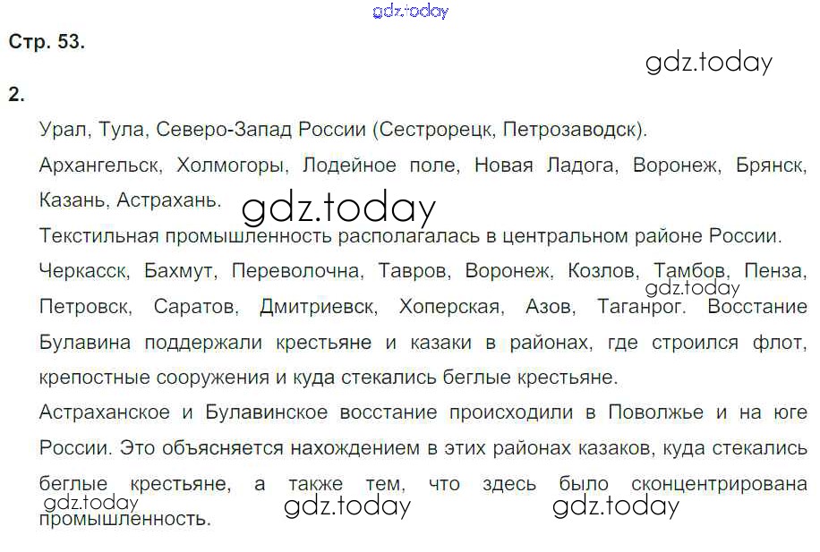 На страницах сайта gdz.today вы найдете учебный и вспомогательный материал, направленный на улучшения знаний школьной программы. ГДЗ - онлайн мир знаний Страницы (решение) 53 Тетради-тренажёру по Истории России для 7 класса Данилов, Лукутин Просвещение Сферы 2016