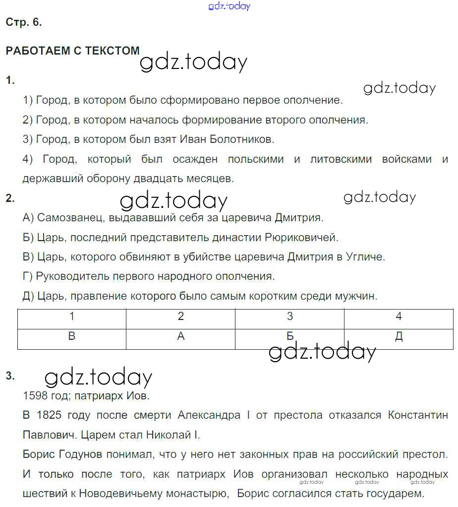 На страницах сайта gdz.today вы найдете учебный и вспомогательный материал, направленный на улучшения знаний школьной программы. ГДЗ - онлайн мир знаний Страницы (решение) 6 Тетради-тренажёру по Истории России для 7 класса Данилов, Лукутин Просвещение Сферы 2016