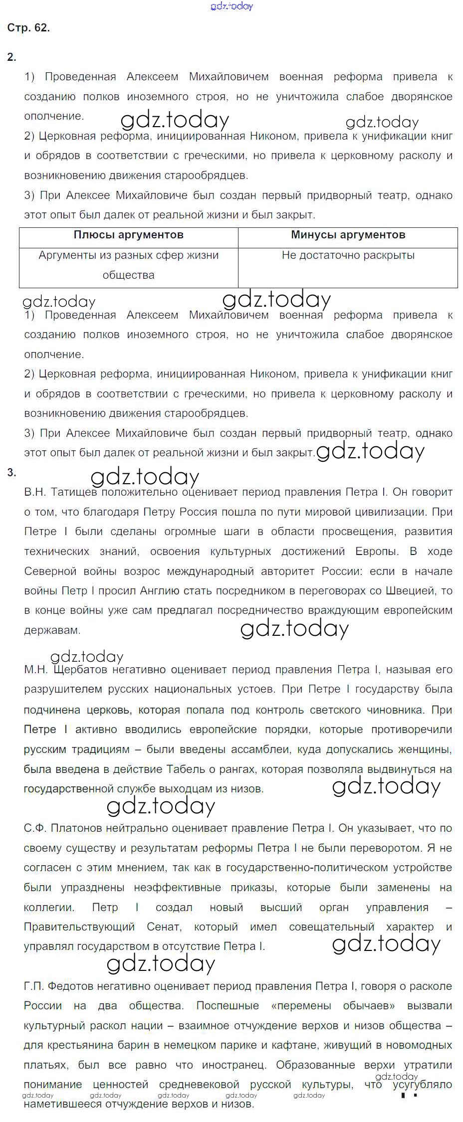 Ответы к Страницы (решение) 62 Тетради-тренажёру по Истории России для 7 класса Данилов, Лукутин Просвещение Сферы 2016
