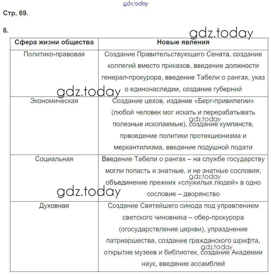 На страницах сайта gdz.today вы найдете учебный и вспомогательный материал, направленный на улучшения знаний школьной программы. ГДЗ - онлайн мир знаний Страницы (решение) 69 Тетради-тренажёру по Истории России для 7 класса Данилов, Лукутин Просвещение Сферы 2016