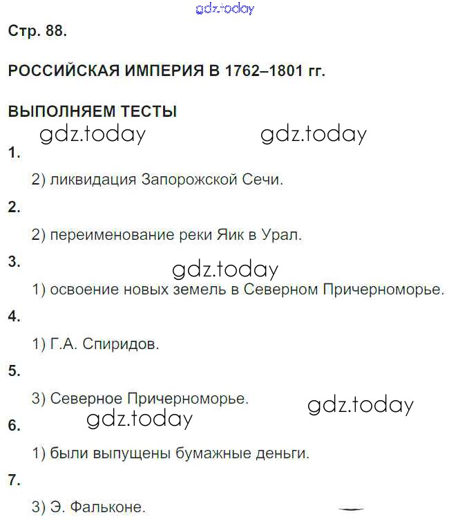 На страницах сайта gdz.today вы найдете учебный и вспомогательный материал, направленный на улучшения знаний школьной программы. ГДЗ - онлайн мир знаний Страницы (решение) 88 Тетради-тренажёру по Истории России для 7 класса Данилов, Лукутин Просвещение Сферы 2016