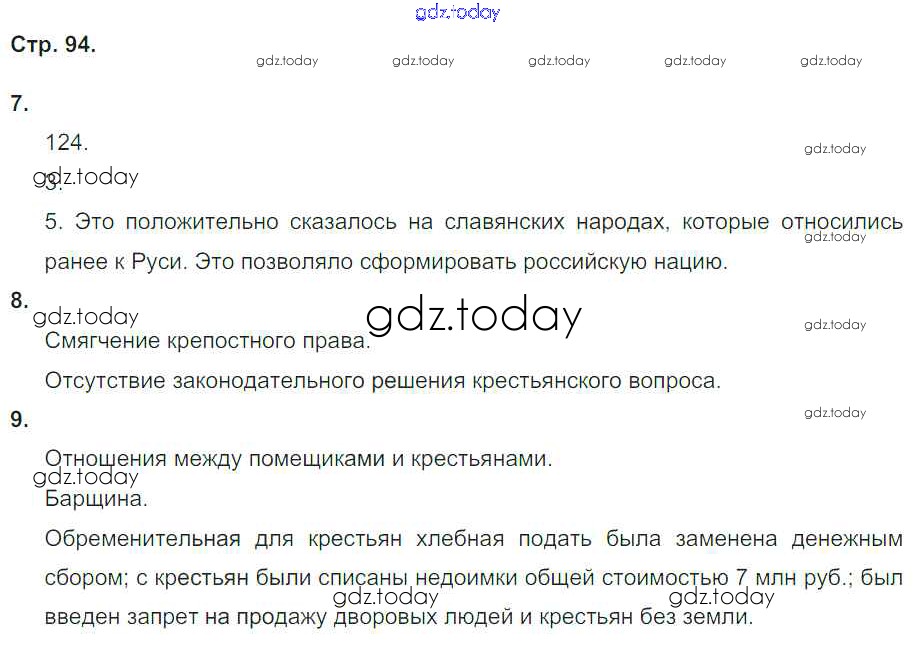 На страницах сайта gdz.today вы найдете учебный и вспомогательный материал, направленный на улучшения знаний школьной программы. ГДЗ - онлайн мир знаний Страницы (решение) 94 Тетради-тренажёру по Истории России для 7 класса Данилов, Лукутин Просвещение Сферы 2016