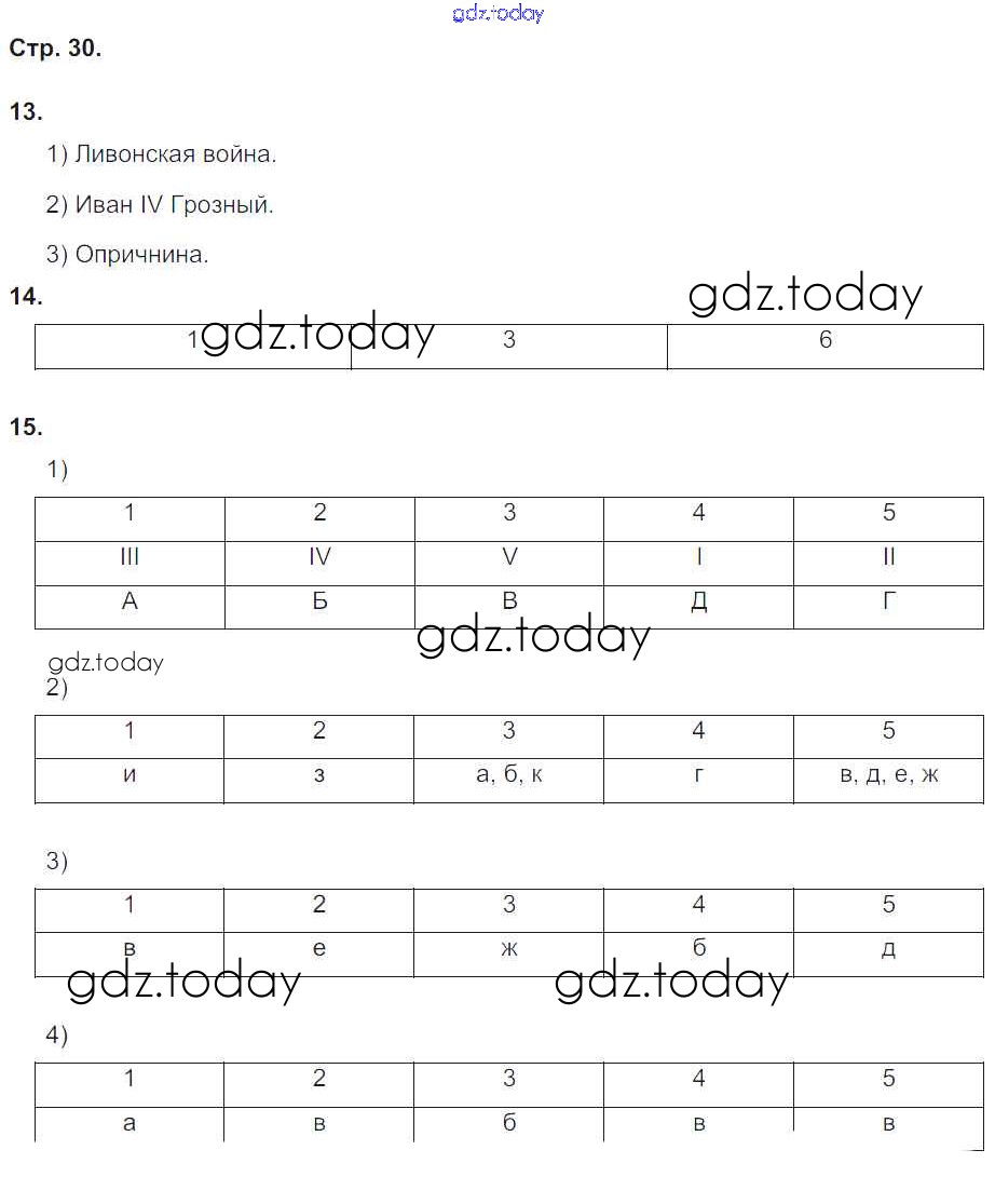 Ответы к Страницы (решение) 30 Рабочей тетради по Истории России для 7 класса Гевуркова Экзамен УМК 2018