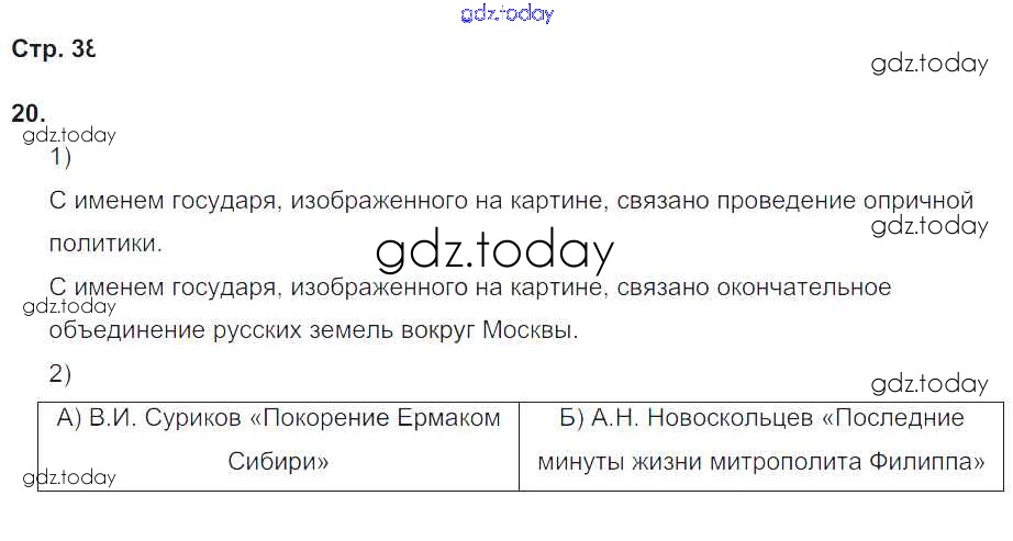 На страницах сайта gdz.today вы найдете учебный и вспомогательный материал, направленный на улучшения знаний школьной программы. ГДЗ - онлайн мир знаний Страницы (решение) 38 Рабочей тетради по Истории России для 7 класса Гевуркова Экзамен УМК 2018
