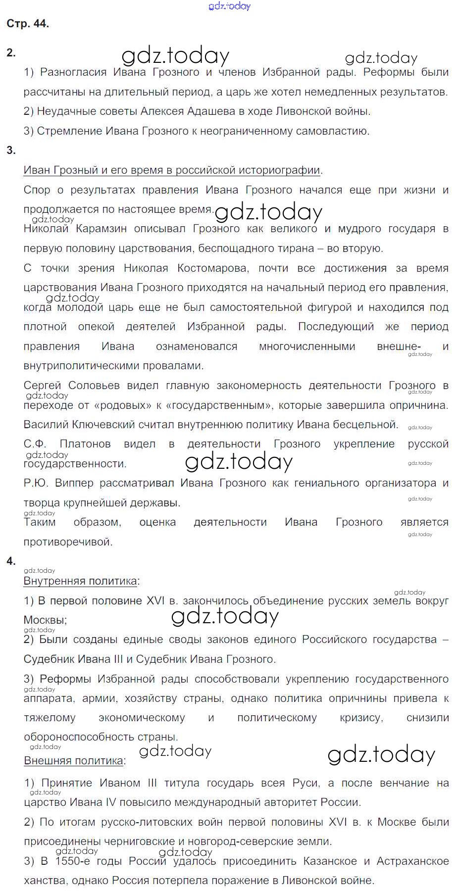 На страницах сайта gdz.today вы найдете учебный и вспомогательный материал, направленный на улучшения знаний школьной программы. ГДЗ - онлайн мир знаний Страницы (решение) 44 Рабочей тетради по Истории России для 7 класса Гевуркова Экзамен УМК 2018