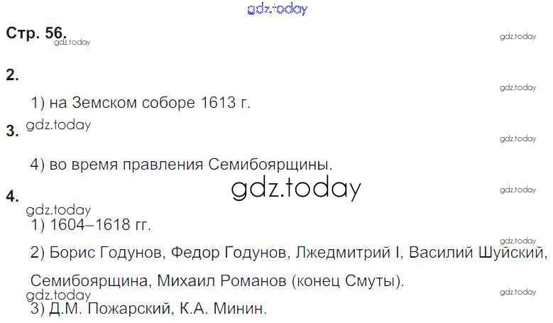 На страницах сайта gdz.today вы найдете учебный и вспомогательный материал, направленный на улучшения знаний школьной программы. ГДЗ - онлайн мир знаний Страницы (решение) 56 Рабочей тетради по Истории России для 7 класса Гевуркова Экзамен УМК 2018