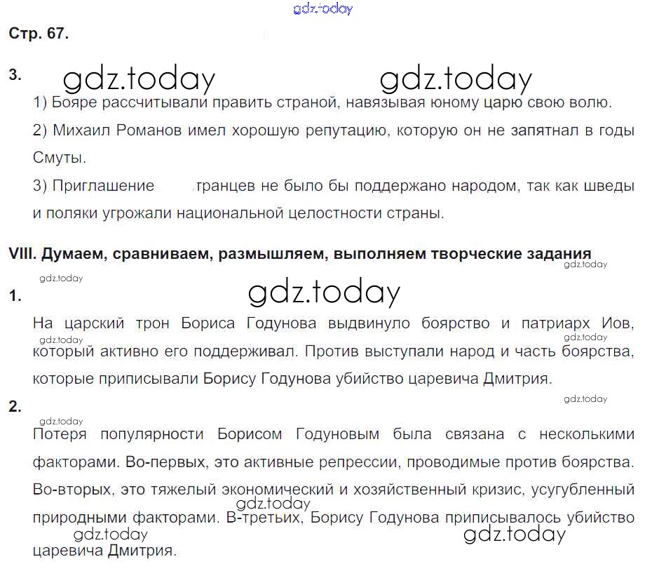 На страницах сайта gdz.today вы найдете учебный и вспомогательный материал, направленный на улучшения знаний школьной программы. ГДЗ - онлайн мир знаний Страницы (решение) 67 Рабочей тетради по Истории России для 7 класса Гевуркова Экзамен УМК 2018