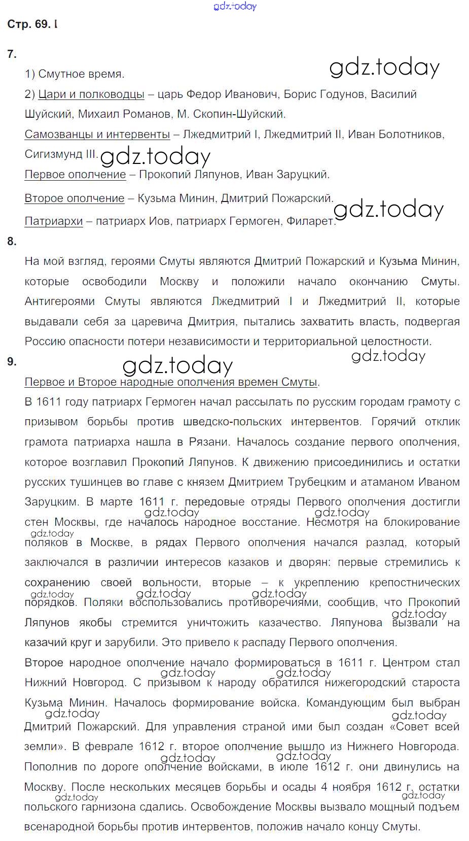 На страницах сайта gdz.today вы найдете учебный и вспомогательный материал, направленный на улучшения знаний школьной программы. ГДЗ - онлайн мир знаний Страницы (решение) 69 Рабочей тетради по Истории России для 7 класса Гевуркова Экзамен УМК 2018