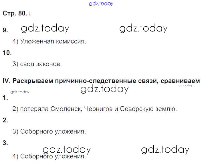 На страницах сайта gdz.today вы найдете учебный и вспомогательный материал, направленный на улучшения знаний школьной программы. ГДЗ - онлайн мир знаний Страницы (решение) 80 Рабочей тетради по Истории России для 7 класса Гевуркова Экзамен УМК 2018